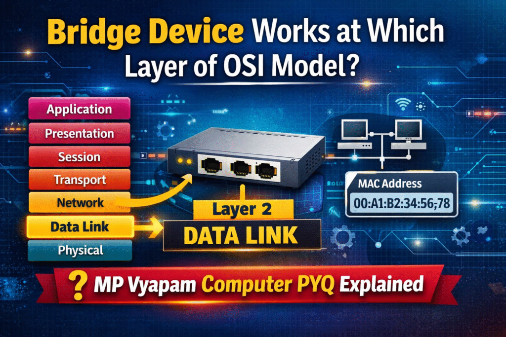 🌐📘 Bridge Device Works at Which Layer of OSI Model? | MP Vyapam Computer PYQ Explained